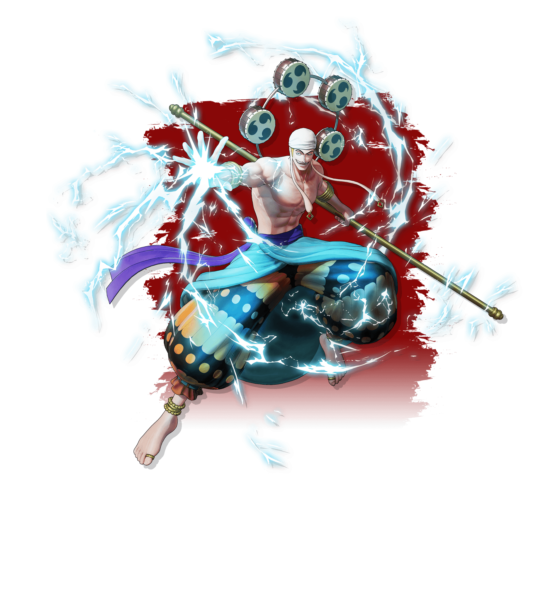 ゴロゴロの実の能力者で、雷を自在に操る力と“心綱”による広範囲の見聞色で圧倒的な強さを誇り、その強さから自身を神と呼称したうえで空島スカイピアの住民を恐怖で支配していた。また、「限りない台地」へたどり着き、そこに「神の国」を建国するという野望もっている。